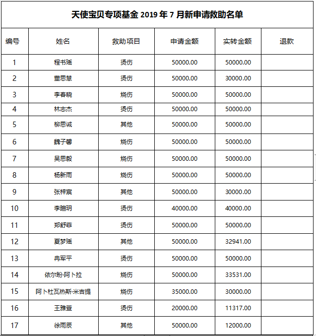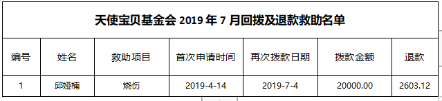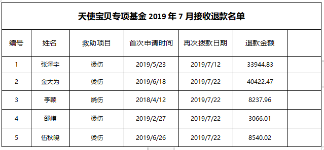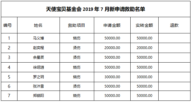 天使宝贝专项基金7月救助总计