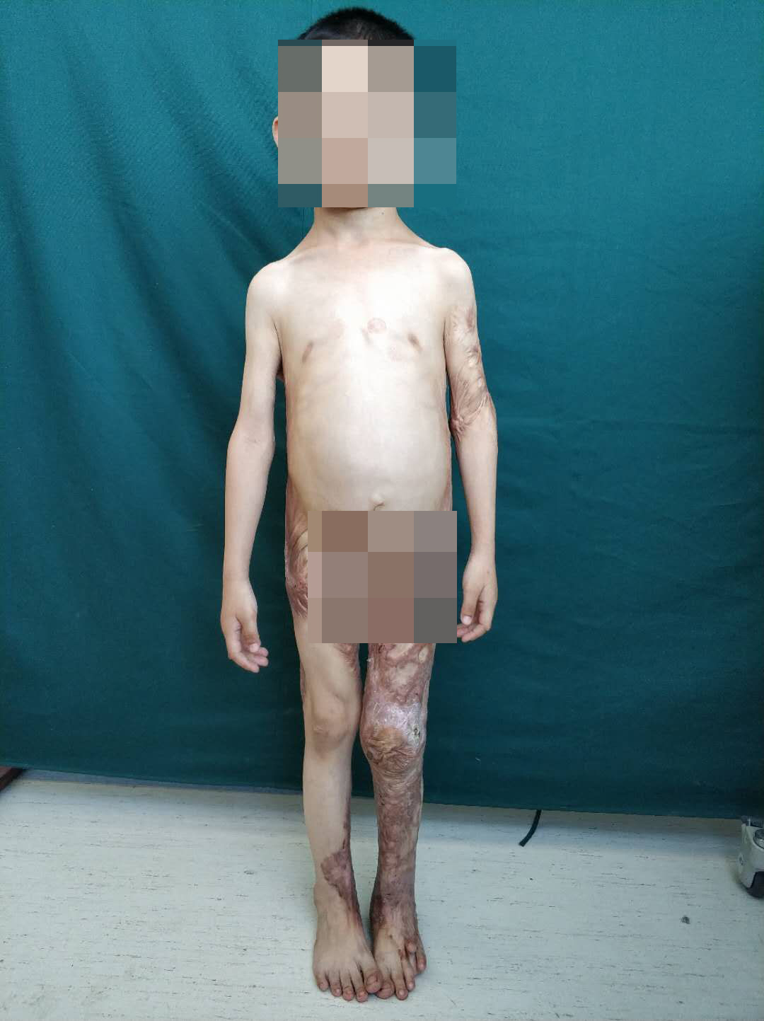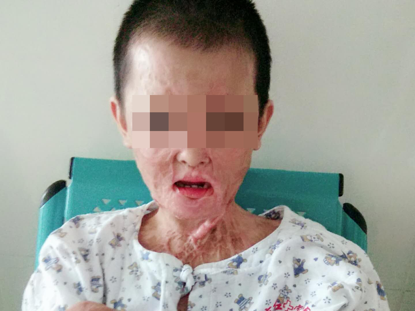 到2016年2月军军一直在进行抗瘢痕的手术和治疗,但效果并不好。2019年7月军军为了进一步治疗又来的了乌鲁木齐新疆军区总医院,因全身广泛性形成瘢痕增生挛缩,双侧腋窝侧胸壁疤痕粘连至双上肢活动明显受限,臀部瘢痕粘连导致排便困难,必须进行手术治疗,否则将影响孩子发育。