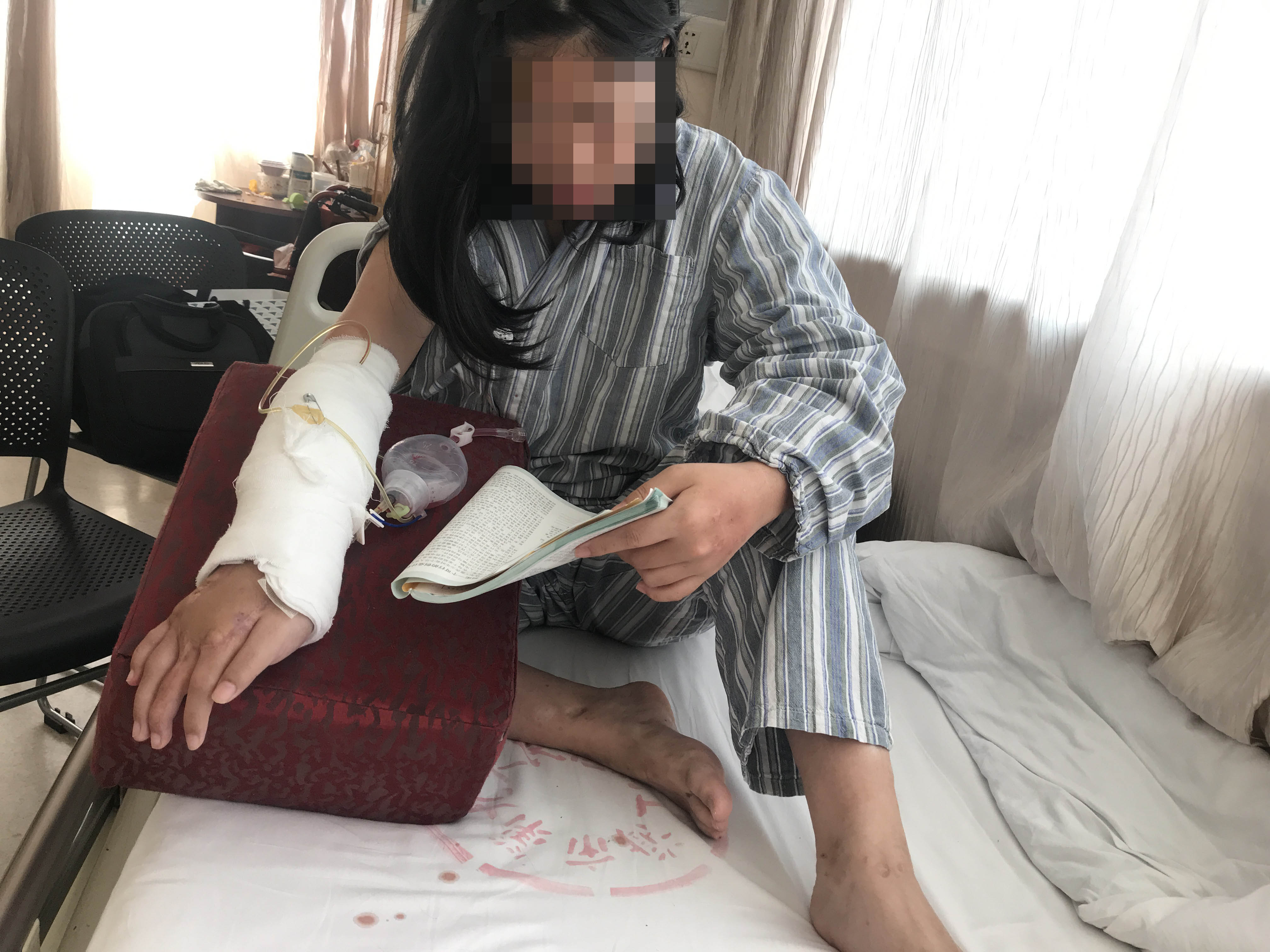 从生病到感染,再到那些大大小小的10余次手术,顽强的小雨如久经沙场的战士,与伤病奋战着。10年多的时间,她从3岁幼童长成14岁的少女,2019年的暑假,小雨在上海第九人民医院做了右手手臂至手面皮瓣及五个指头的肌腱修补,经历了16个小时的手术,可遗憾的是其中右手中指关键已经坏掉,无法修补。